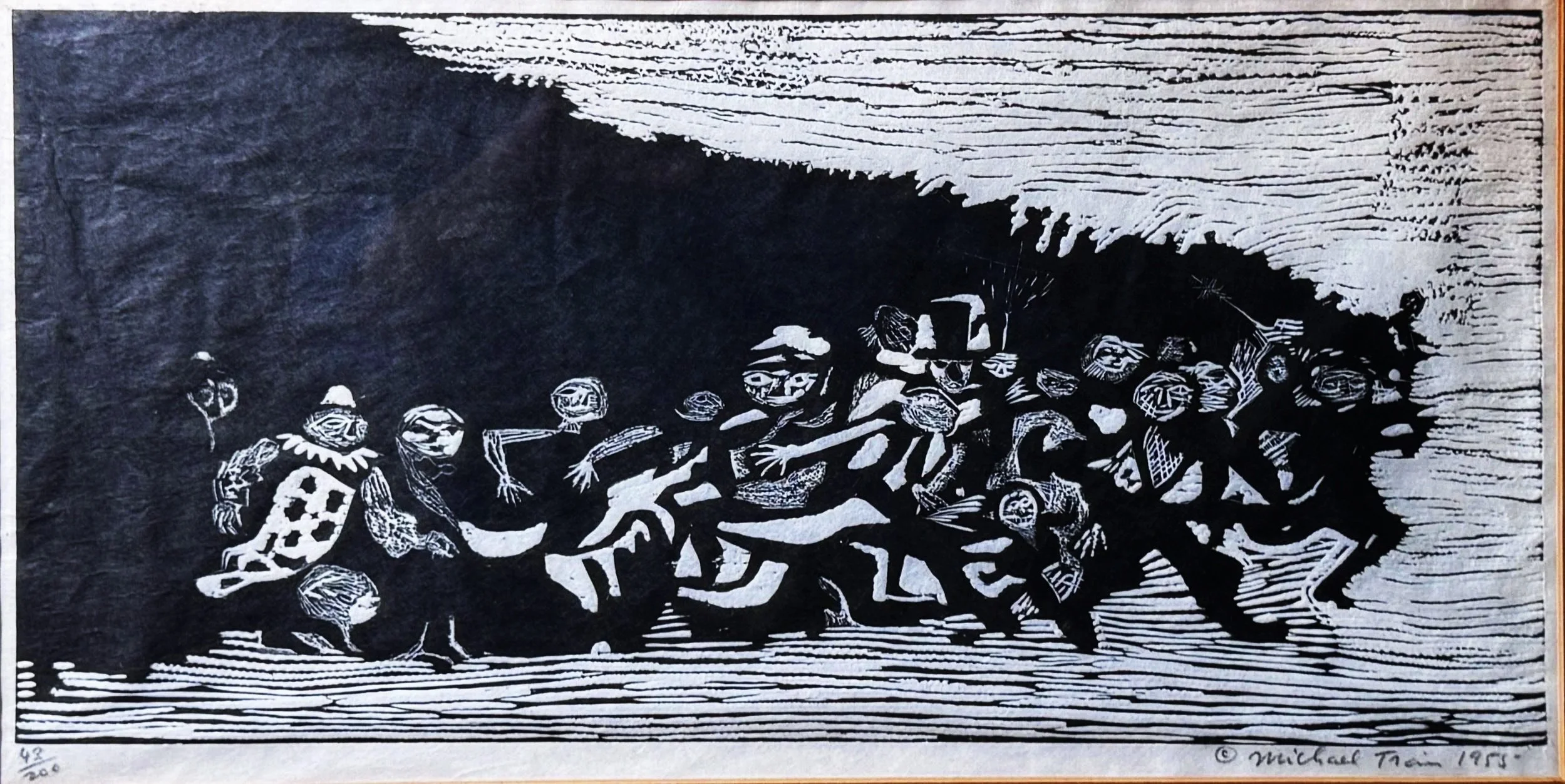 Michael Train Untitled - 1955 Woodcut - 43/200 - signed 26.04 x 53.66 cm (10.25 x 21.125 in. Private Collection of Kaseowitz Gallery