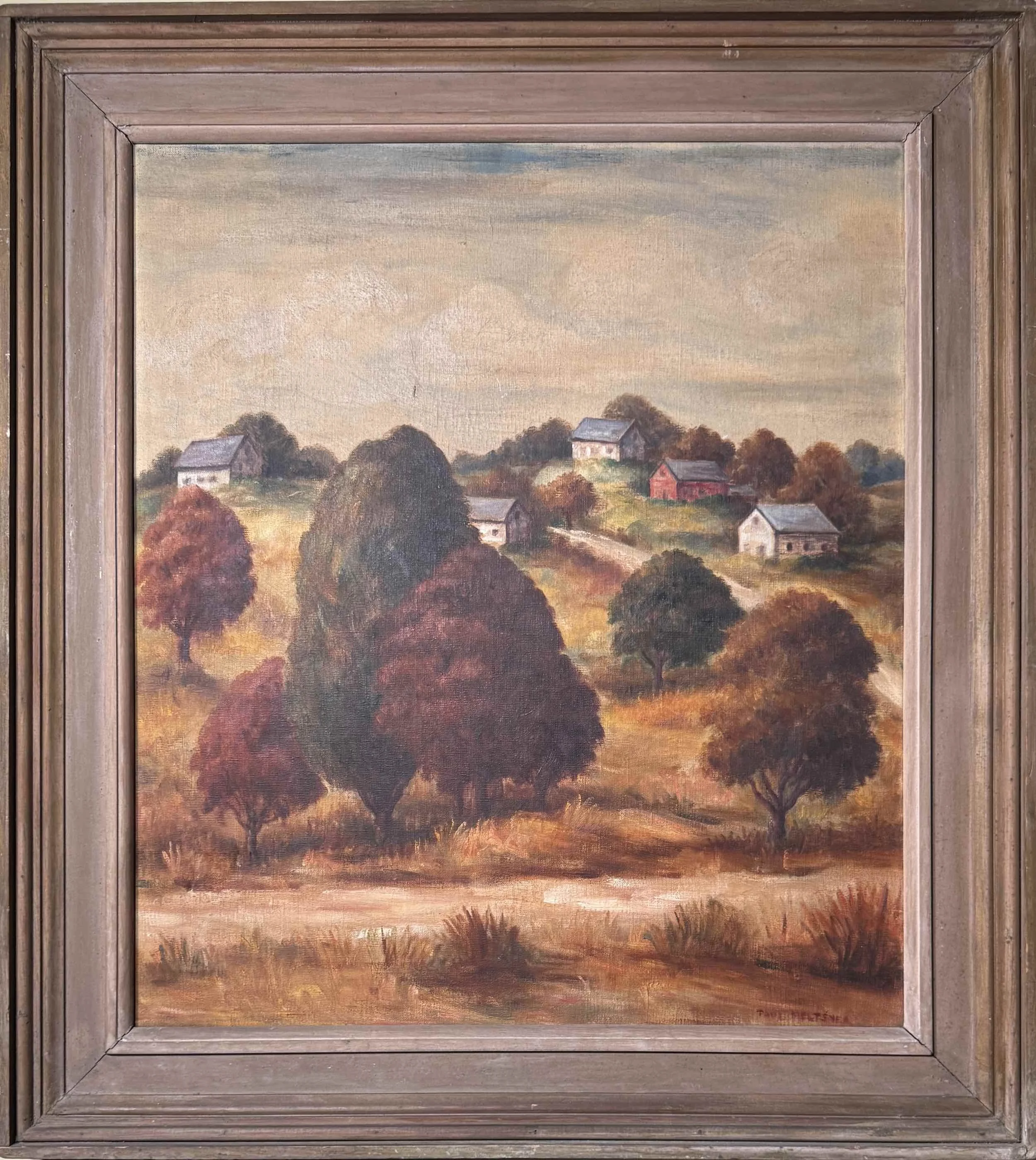 Paul Meltsner Untitled Rural Scene Oil on Canvas - c. 1940s - 1950s 66.04 x 76.2 cm (26 x 30 in) Private Collection of Kaseowitz Gallery